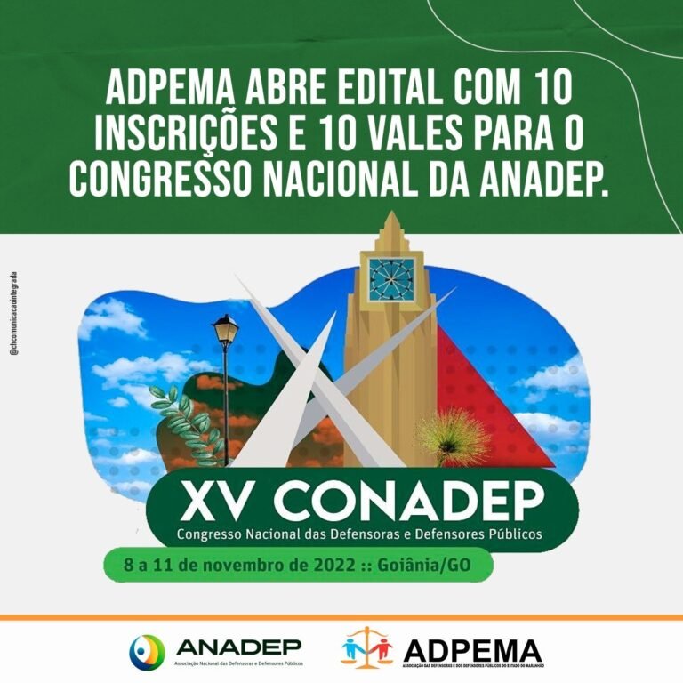 A ASSOCIAÇÃO DAS DEFENSORAS E DOS DEFENSORES PÚBLICOS DO ESTADO DO MARANHÃO – ADPEMA torna público o sorteio de inscrição e vale para o CONADEP. O sorteio será realizado no dia 01 de agosto, às 15h, na sede da ADPEMA, com a presença de membros da Diretoria ADPEMA.