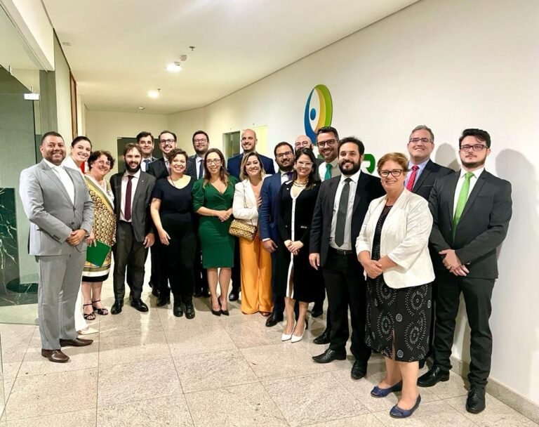 Representantes das Associações Estaduais e do DF durante as atividades legislativas no Senado. Na foto, ao lado da senadora Soraya Thronicke (União-MS), autora da emenda que contempla a categoria na PEC 63.