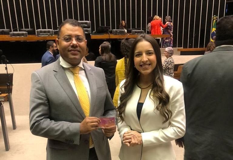 PRESIDENTE DA ADPEMA CUMPRIMENTA A DEPUTADA FEDERAL AMANDA GENTIL, PROPONENTE DA SESSÃO, NA CÂMARA DOS DEPUTADOS, DE COMBATE À EXPLORAÇÃO SEXUAL CONTRA CRIANÇAS E ADOLESCENTES.